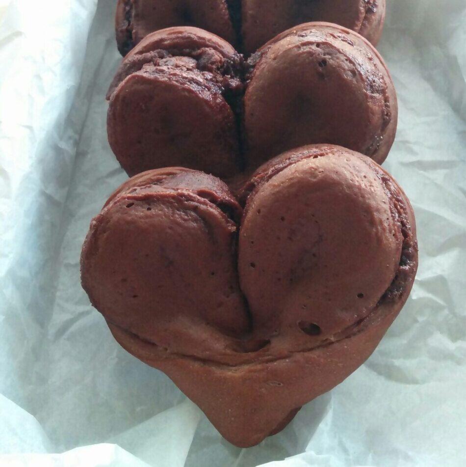 親子で、ハート型のチョコパンを作ります。