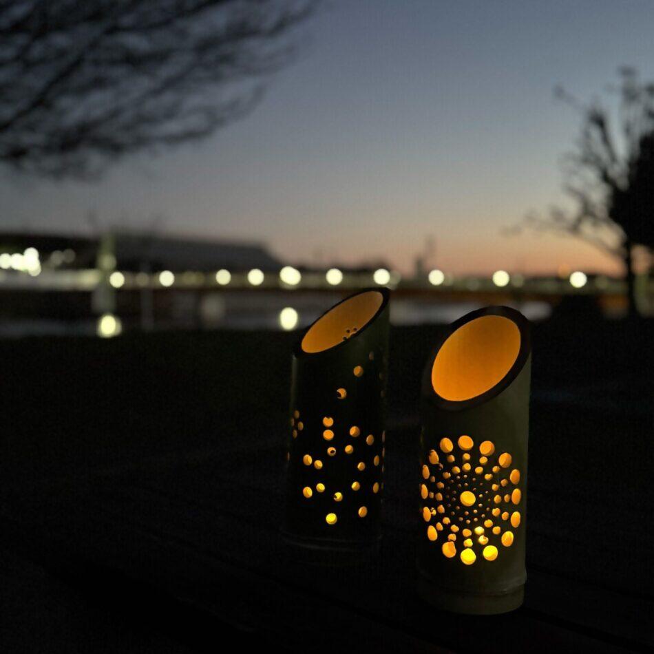 里山から切り出した竹で作るとうろうの光は、優しく心が癒されます。